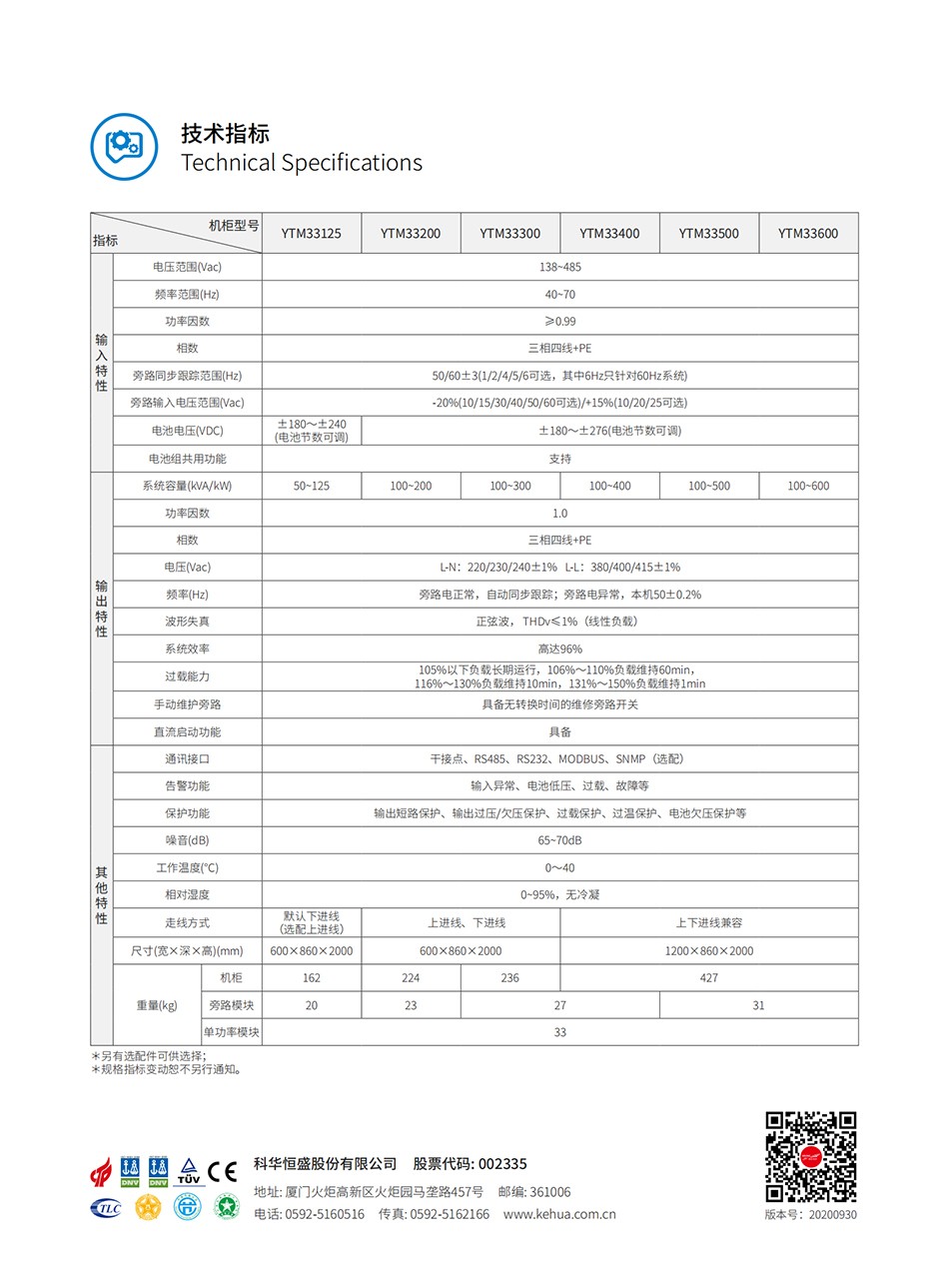 科华YTM系列三进三出UPS(50-600kVA)